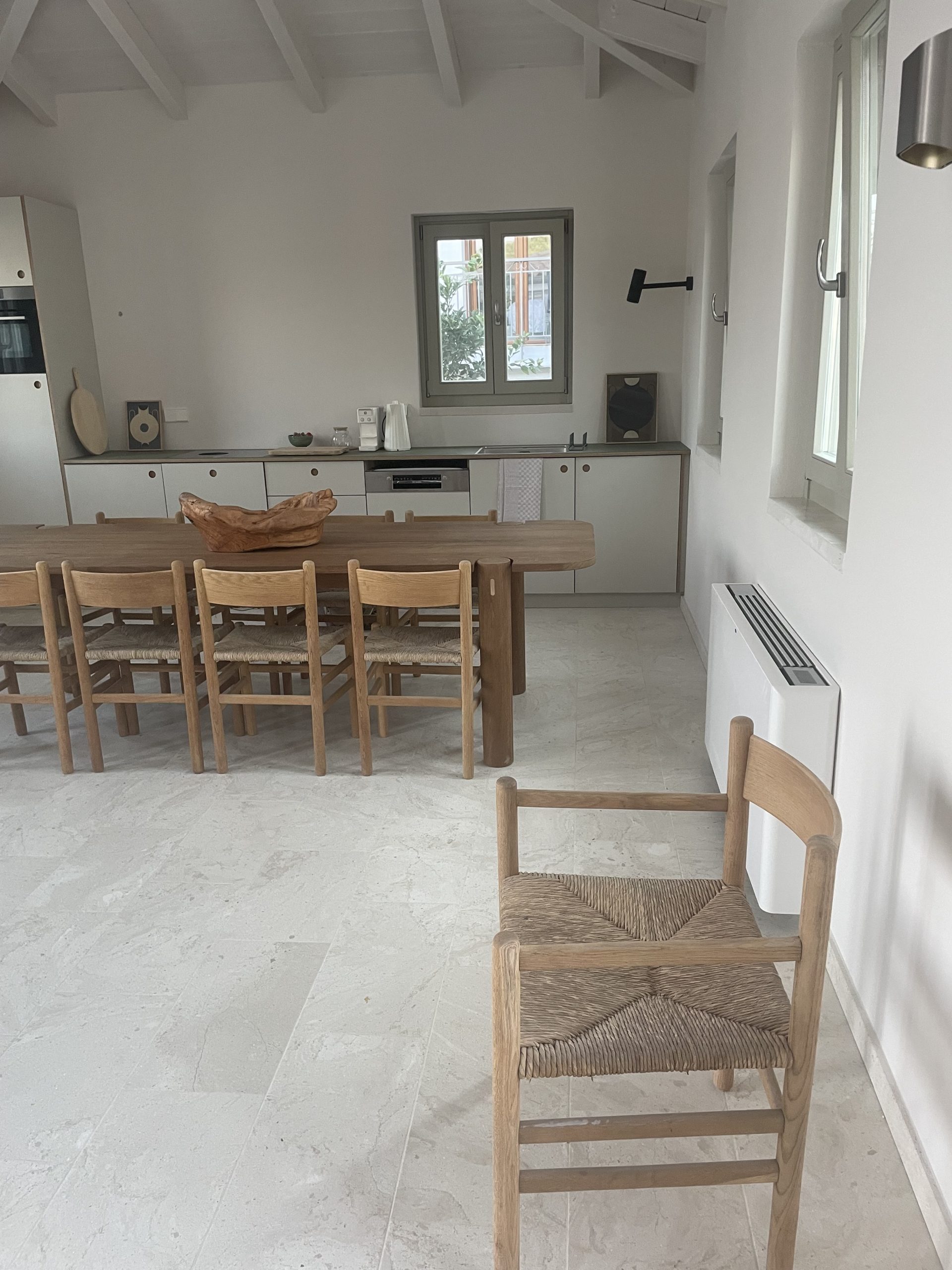 Η καρδιά του σπιτιού αποτελείται από έναν ενιαίο χώρο σαλονιού και κουζίνας, σχεδιασμένο με μεράκι και προσοχή στη λεπτομέρεια. Η μοντέρνα κουζίνα είναι εξοπλισμένη με όλες τις ανέσεις και τα κορυφαία ηλεκτρικά είδη, ενώ το άνετο σαλόνι προσφέρει μια απολαυστική ατμόσφαιρα για χαλάρωση και κοινωνικές στιγμές. Αλλά η αληθινή μαγεία αποκαλύπτεται στον εξωτερικό χώρο, όπου η εκτεταμένη βεράντα και ο πανέμορφος κήπος συναντιούνται, προσφέροντας έναν ειδυλλιακό χώρο για ατελείωτες στιγμές χαλάρωσης και απόλαυσης της φύσης. Εδώ, μπορείτε να απολαύσετε τον πρωινό σας καφέ ή ένα γεύμα κάτω από τον γαλάζιο ουρανό, αφού αναπνέετε το φρέσκο αέρα και απολαμβάνετε την ειρήνη που προσφέρει αυτό το ειδυλλιακό περιβάλλον.